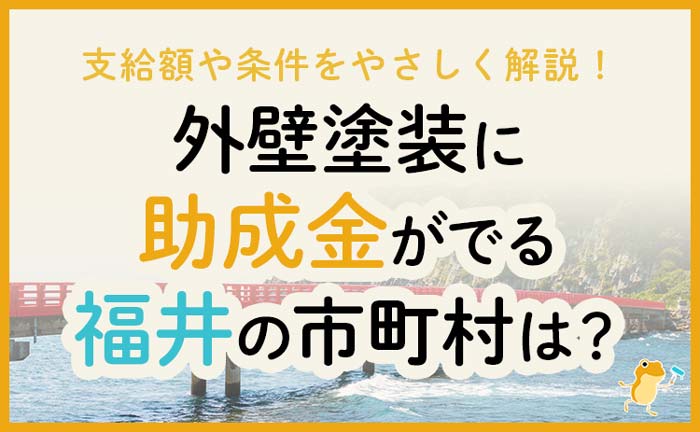 福井県にお住まいの方で、家の外壁塗装をお考えでしたら、住んでいる市区町村の助成金が使えるかどうかを確認しましょう。 はじめに、福井県で外壁塗装の費用の助成...
