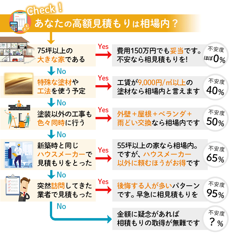 家が75坪以上の場合、高級塗料を使う場合など、限られたケースでは妥当
