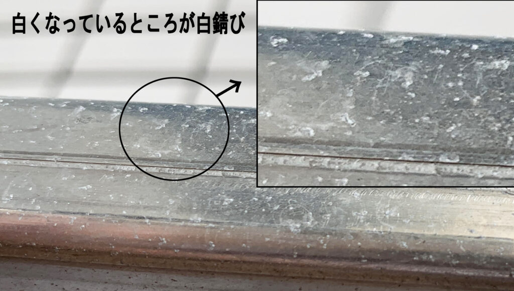 洗剤などの化学成分や汗など塩分を含んだ水滴が付着と乾燥を繰り返しているうちに「白錆び」という腐食がおこります。