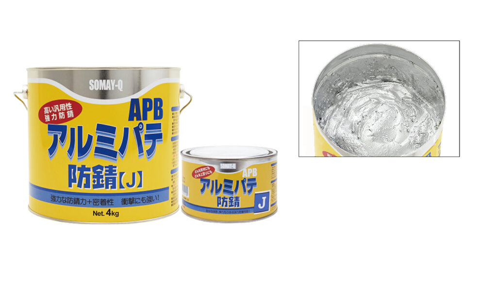 アルミサイディング塗装の工程では実際の粘土のようなものでなく、銀色の絵の具のようなペースト「アルミパテ」を用いて埋めていきます。