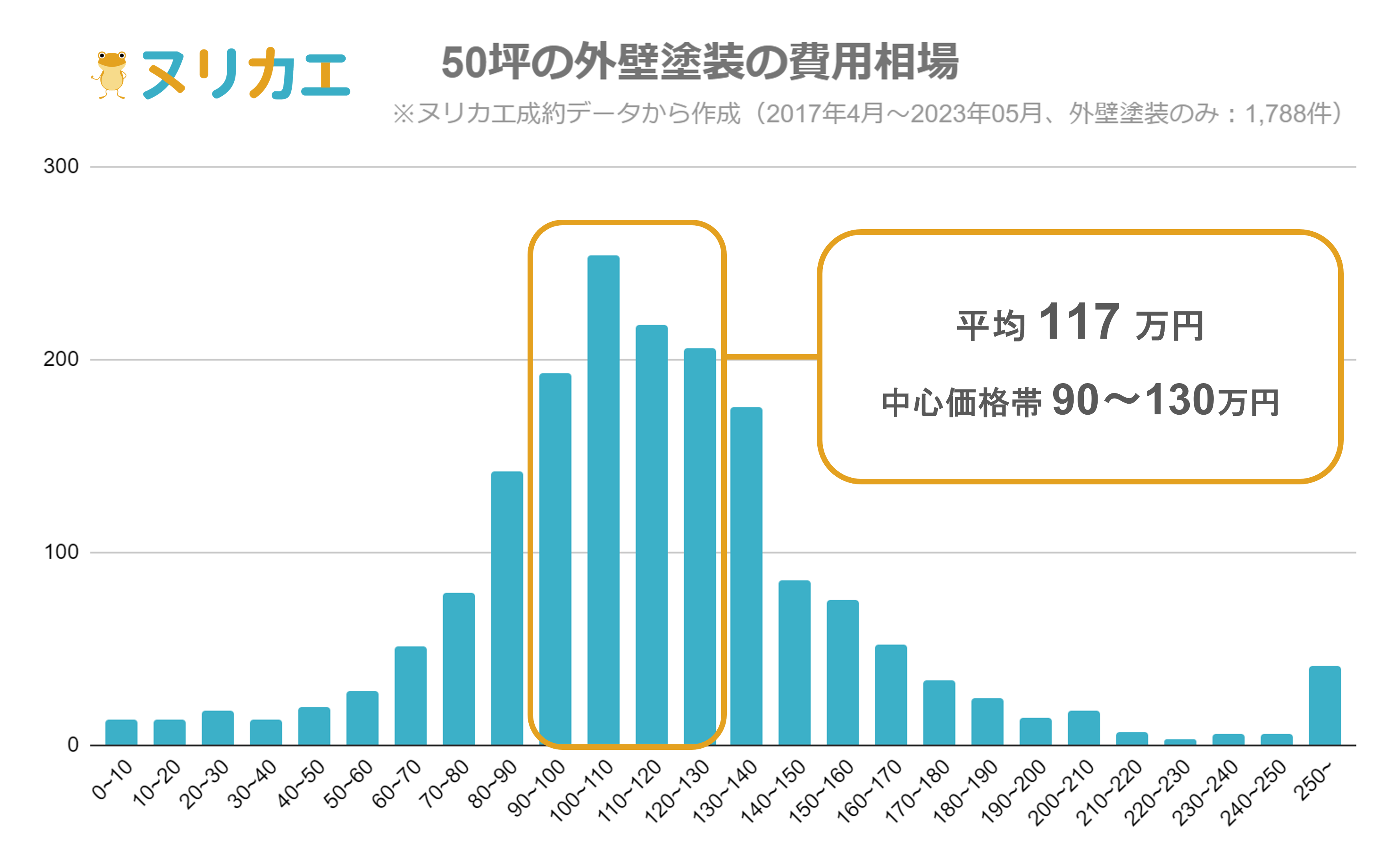 ※費用相場は本サービス「ヌリカエ」の2017年4月~2023年5月における成約データから算出(外壁塗装:1,788件)