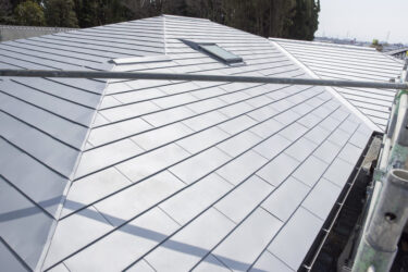 グレーのガルバリウム鋼板で屋根を葺いた事例になります。グレーは屋根の色として広く採用されており、施工例も数多くあります。