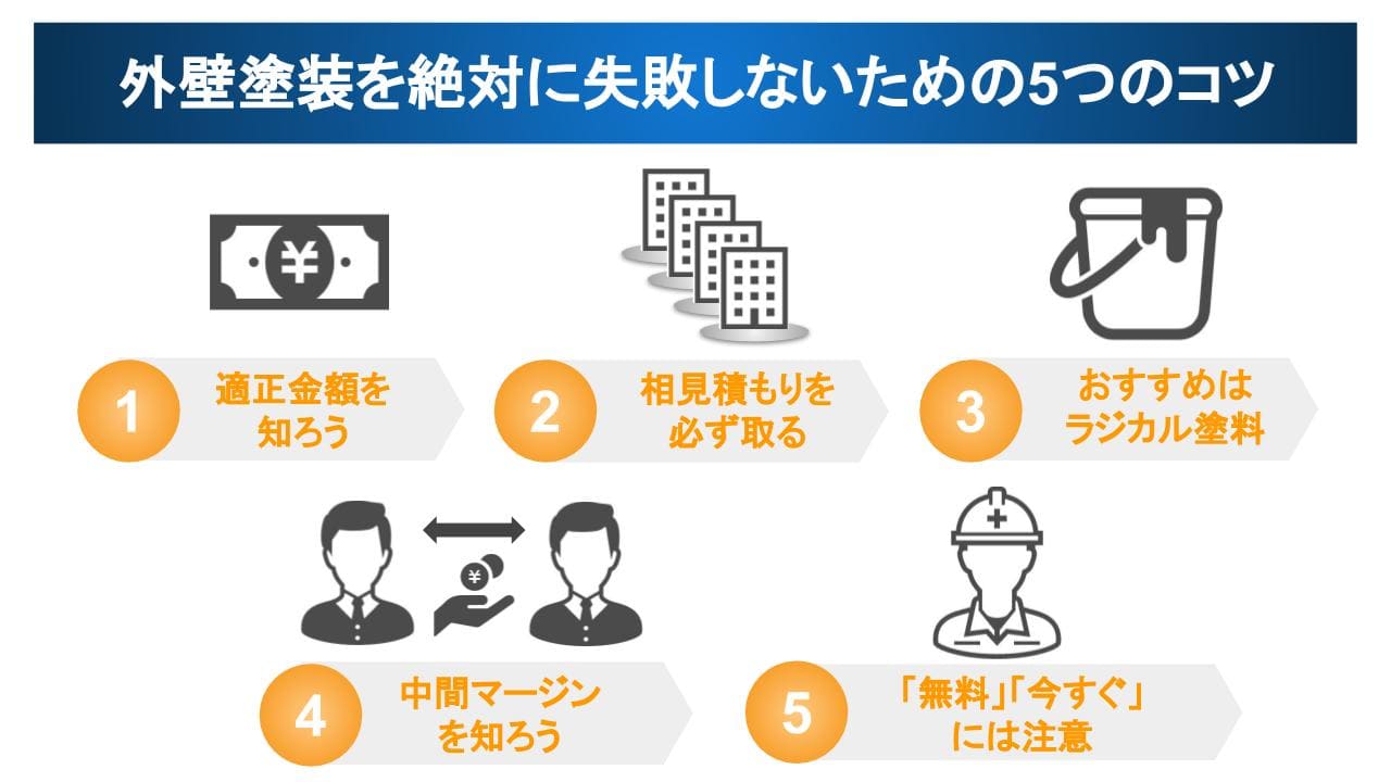 外壁塗装で失敗しないためのコツを厳選して5つ紹介します。