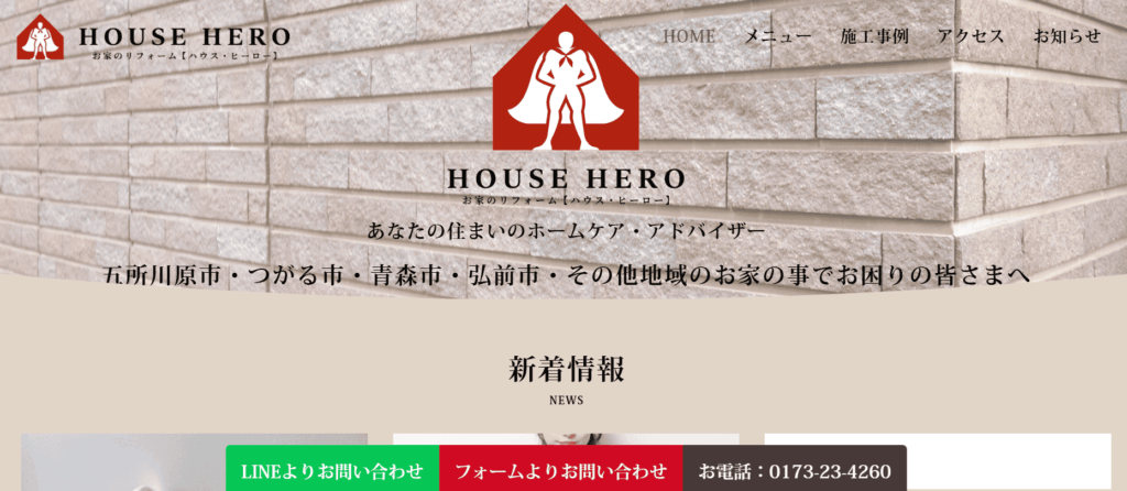 【外壁・屋根】をメインに 住宅のトータルリフォームを提供しております。 当社のモットーは 【あなたの住まいを守るヒーロー】 青森県は冬には雪、夏には猛暑 住まいに大変ダメージがかかります。 家族みんなの大事な住まいを私たちハウス・ヒーローが心をこめて守ります。 お気軽にお声がけください!