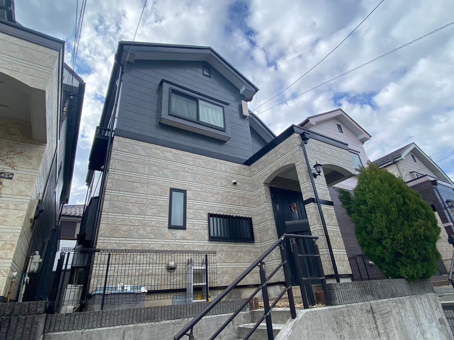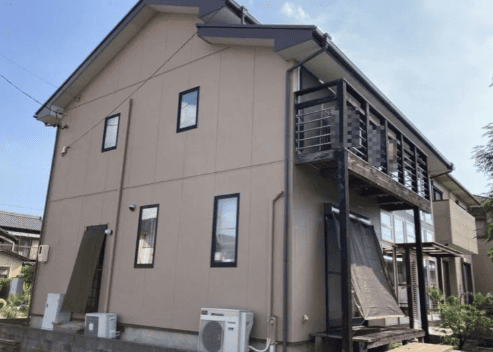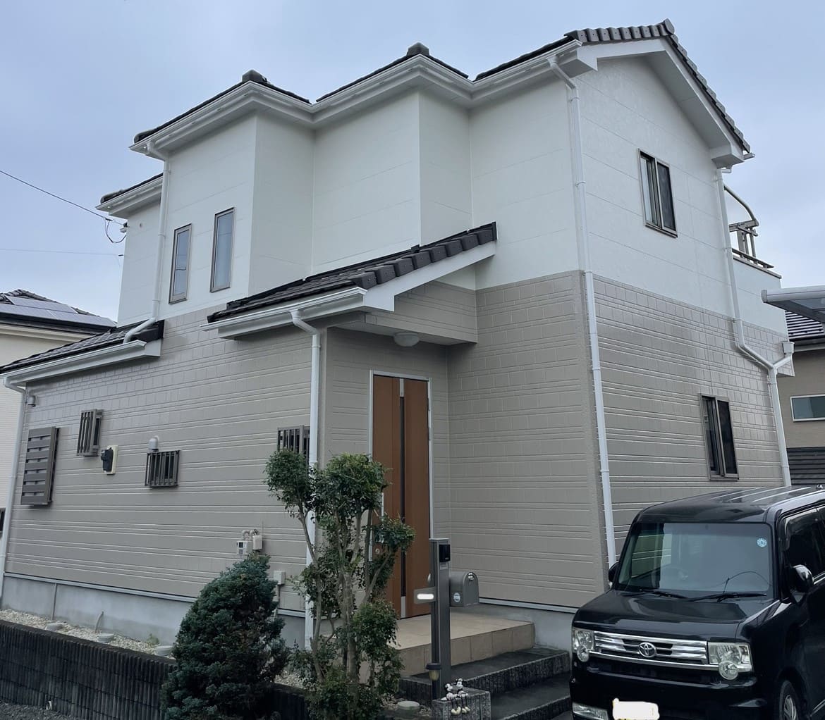 先ほどの施工例とは違い、1階部分に明るい色、2階部分をより暗い色にすることで、明度がはっきりし引き締まった印象となっています。