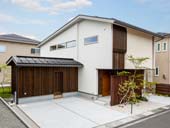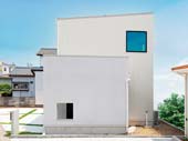 人目に触れる正面側の外壁から開口部をなくし、白の印象が強く残るデザインの家。