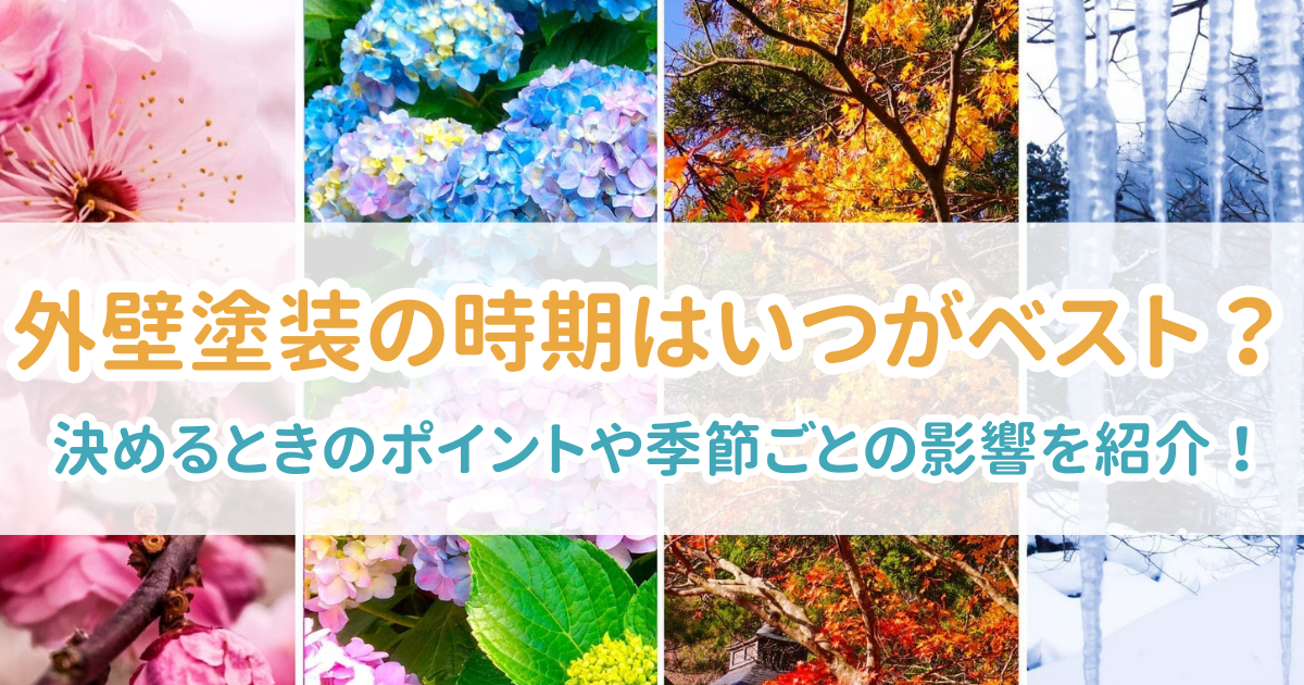 新築から外壁塗装のご予定がある方は「塗装する時期をいつにしようかな…」「季節によって塗装への影響はあるの?」といった疑問やお悩みを抱えている方は多いのではないでしょうか。