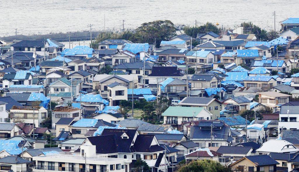 ▲台風で住宅の屋根が大被害を受けた千葉県鋸南町の様子