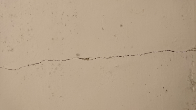 クラックの代表的なものとして、以下の例があげられます。クラックが起きているところで、壁がはがれ始めていることがわかります。
