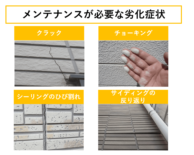 以下のような劣化症状が外壁に発生している場合は、すぐに外壁リフォームを依頼することが必要です。