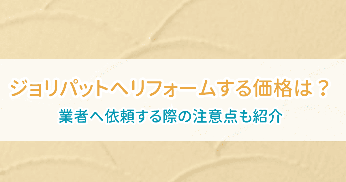 ジョリパットへリフォームする価格は?業者へ依頼する際の注意点も紹介