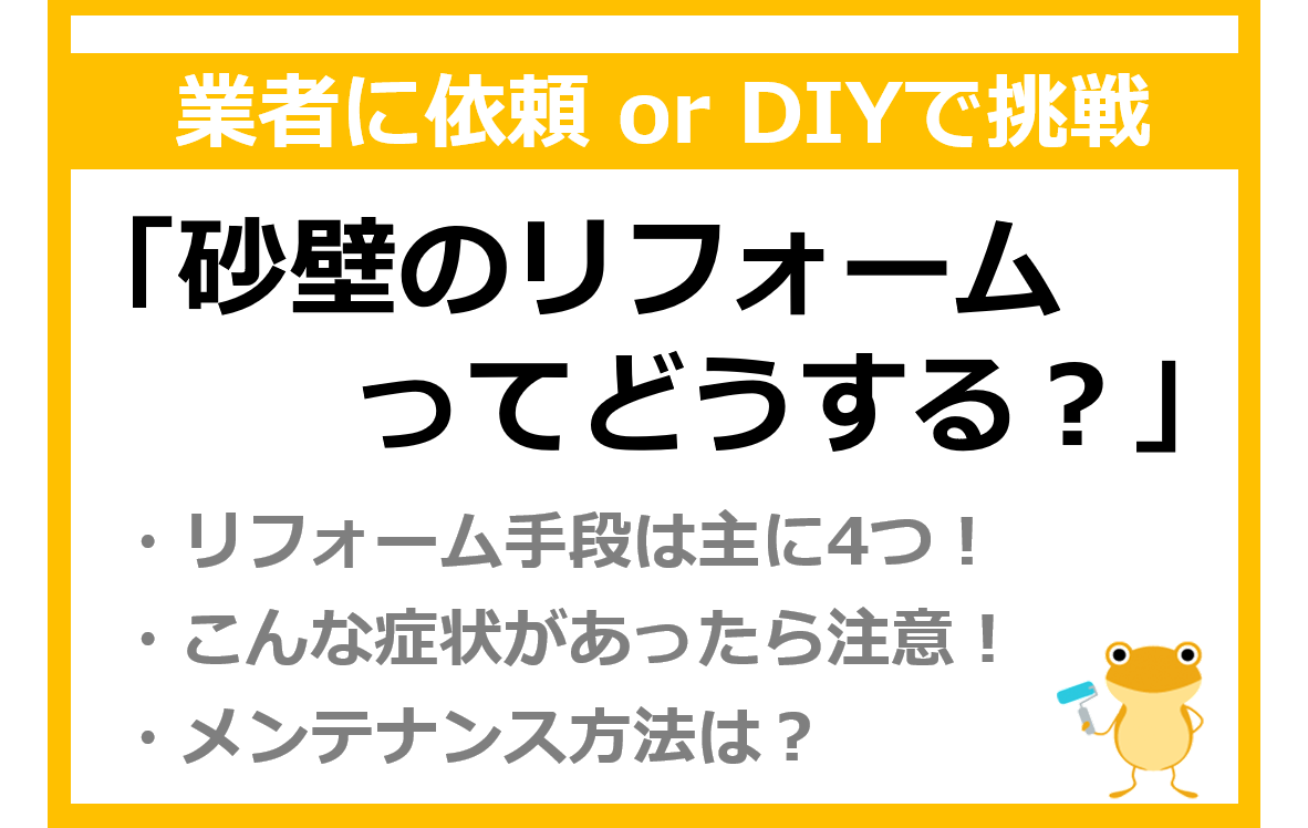 砂壁は内壁に使用されることが多いので、DIYでリフォームしてしまおうと考えていた方も多いかと思います。