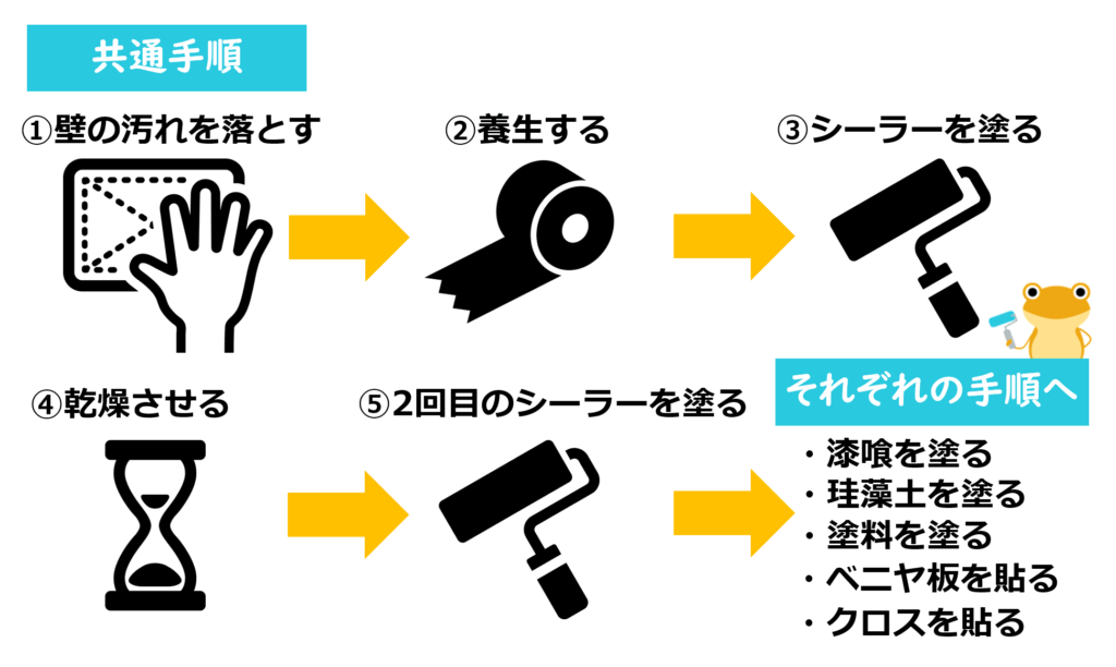 ③、④のように、既存の砂壁からリフォームする方法は、DIYでも人気なので、以下で手順を見ていきましょう。