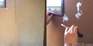 - 穴埋め用のパテで、ひびや穴を埋める
