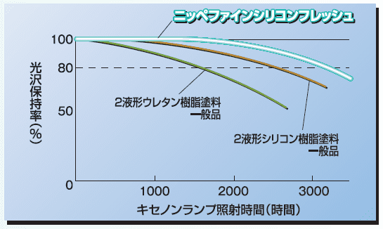 「ファインシリコンフレッシュ」は、一般的なシリコン塗料よりも高い「耐候性」をもちます。