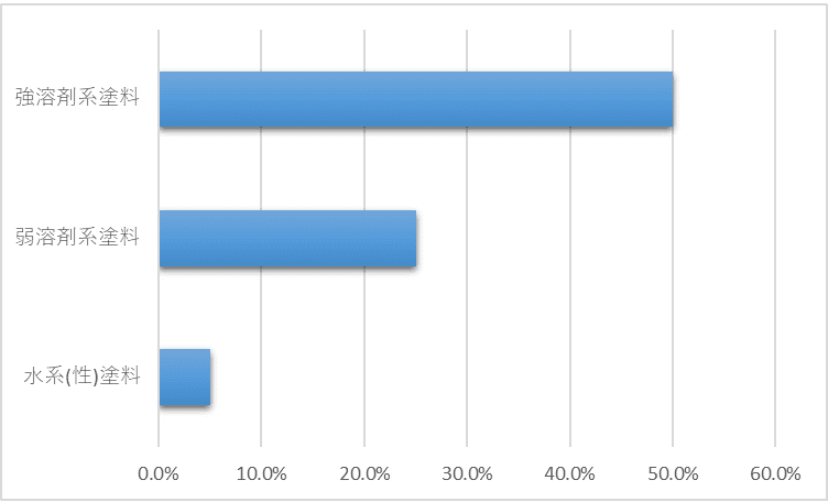 ・刺激成分を油性塗料のを約1/4~1/9しか含まない「水性塗料」の低刺激性
