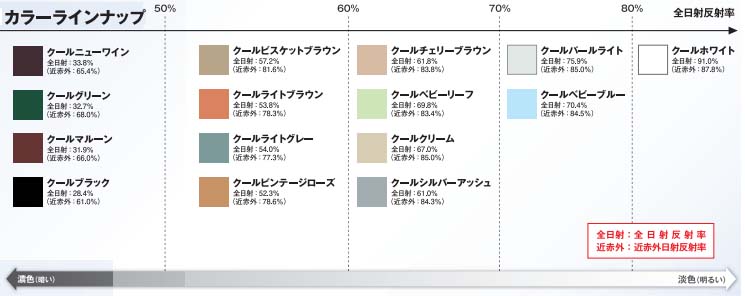 遮熱性能を左右する指標の「日射反射率」も平均以上で、大手の定番製品ということもあり扱いに慣れた業者が多いのも安心です。