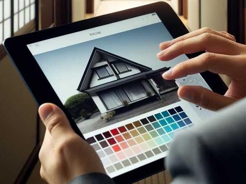 タブレットPCを用いることで、施工スケジュールや見積もり、カタログ、塗装のデザイン案などの情報をリアルタイムで表示し、その場でお客様に見せたり、資料に反映させることができます。