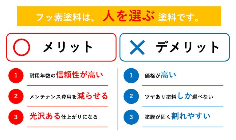 フッ素塗料のメリットとデメリットは、主に以下の3つずつあります。