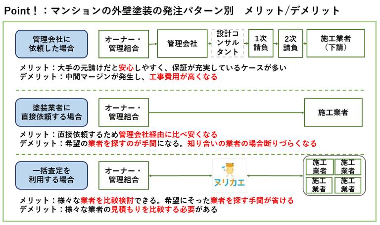 ・マンションの外壁塗装の費用を抑えるには「 管理会社ではなく自ら業者選定を行う」「複数業者から見積もりを取る」ことが重要