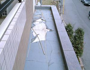 防水層と下地コンクリートとの間に、空気の層ができ膨れができてるのも、マンション外壁塗装の劣化症状のひとつ。