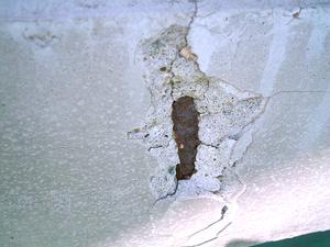 クラックや目地などから雨水などが侵入し、内部の鉄筋が腐食して爆裂している状態は大変危険です。