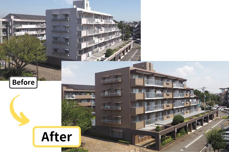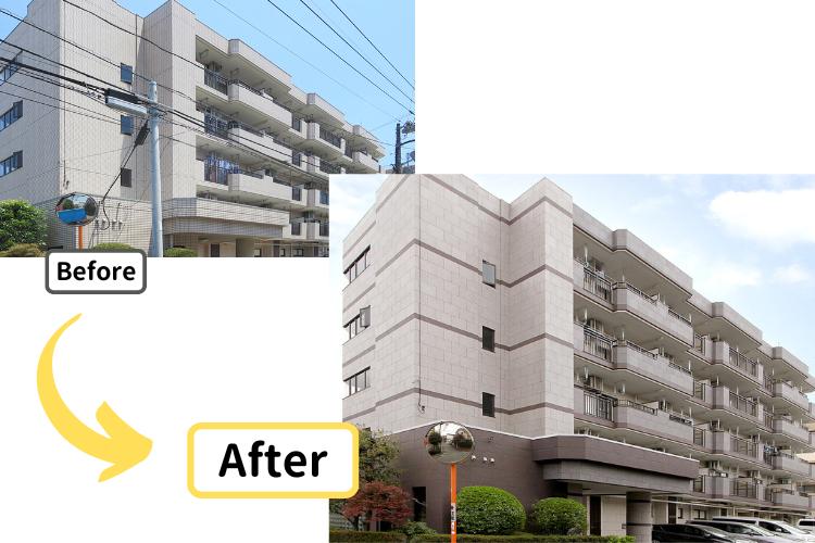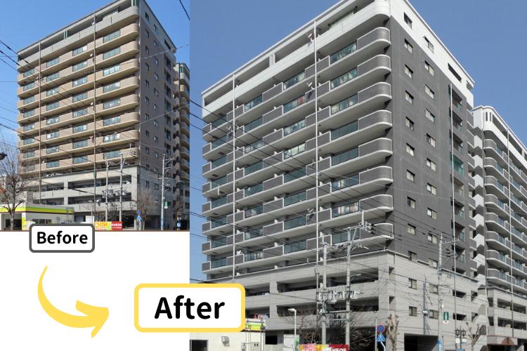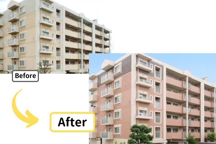 ここからは、マンションのおしゃれな外壁塗装の事例を、ビフォーアフター形式で5つ紹介します。