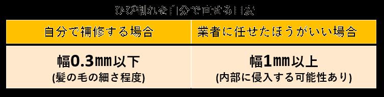 | 0.3mm以上 | ひび割れの応急処置を検討しましょう。 |