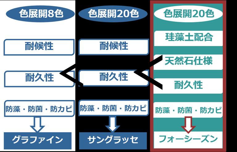 | 特徴 | ・カラーバリエーションが20色ある ・セラミック塗材で耐候性が高い |