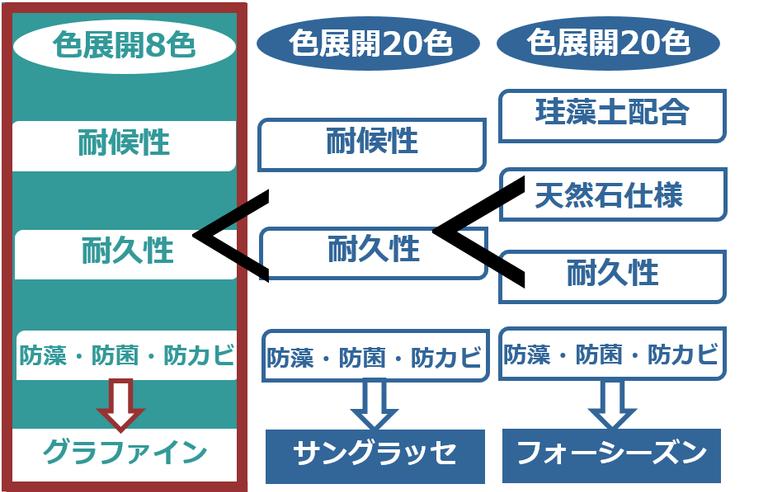 グラファインと一つ上のグレードであるサングラッセとの違いは、カラーバリエーションの数です。