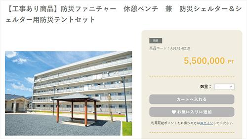 公開されているリストによると、交換に必要なポイントがもっとも多い商品はいわゆる「東屋」。必要ポイントは550万ポイントで、設置工事費も含まれています。