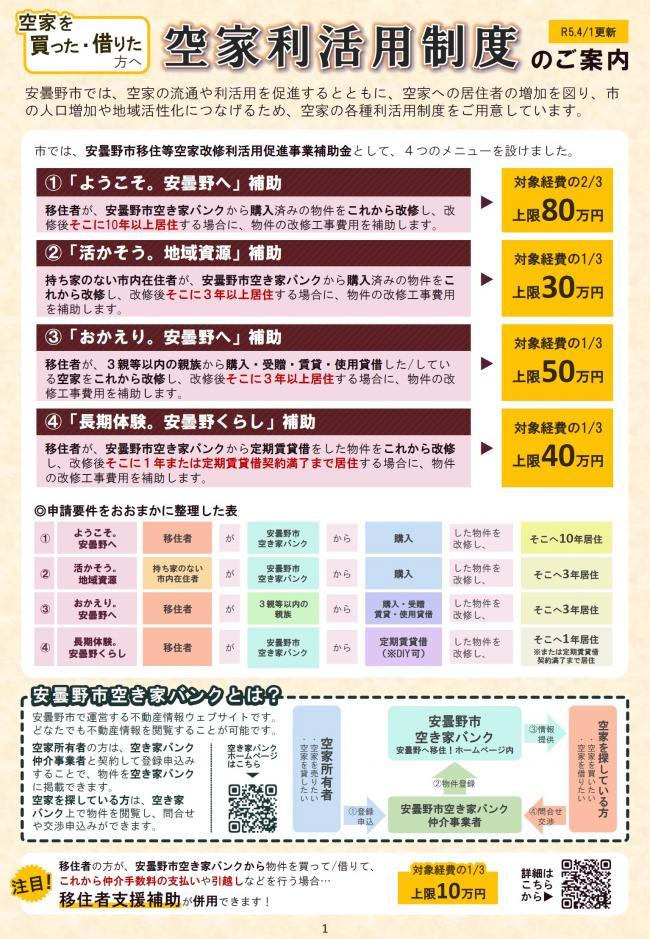 安曇野市の外壁塗装の助成金制度|①移住等空家改修利活用促進事業補助金