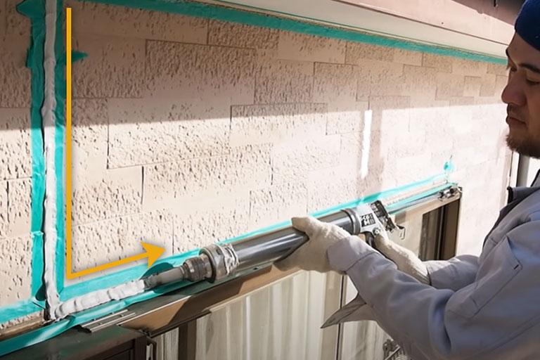コーキングガンにコーキング材をセットし、途中で止めず一気に充填します。