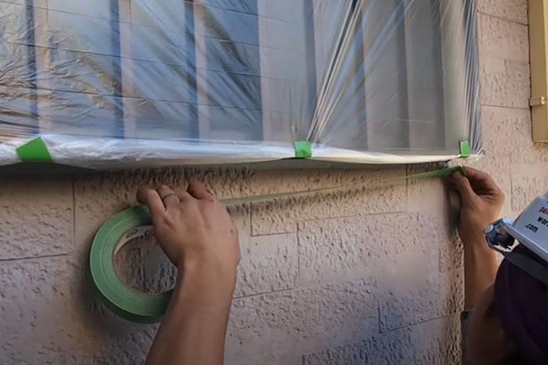 コーキング注入前に、目地の溝の両側をマスキングテープで覆います。