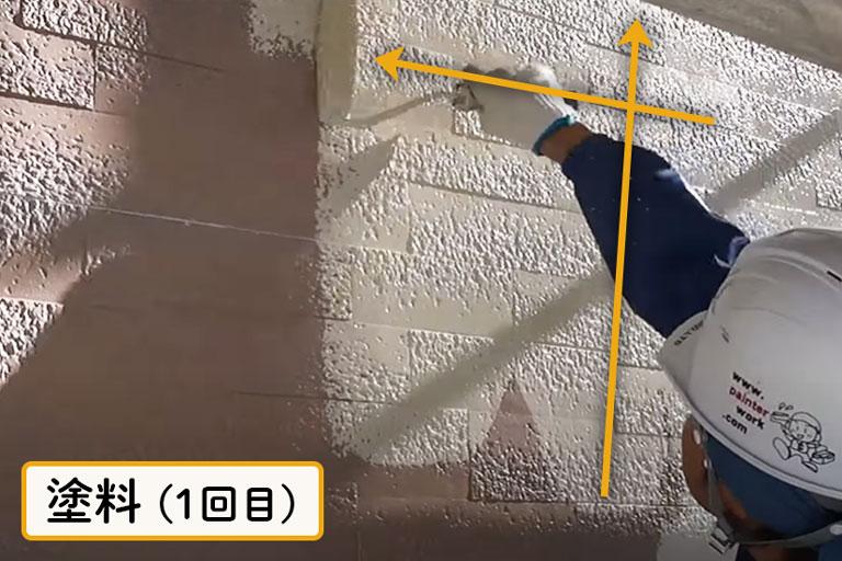 ローラーを上下方向・左右方法に使い分けて、塗り残しやムラがないよう塗っていきます。
