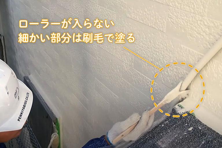 下塗り・中塗り・上塗りのどの工程でも、ローラーが入りづらい細かい部分は刷毛などを使って置くまで塗ることが重要です。