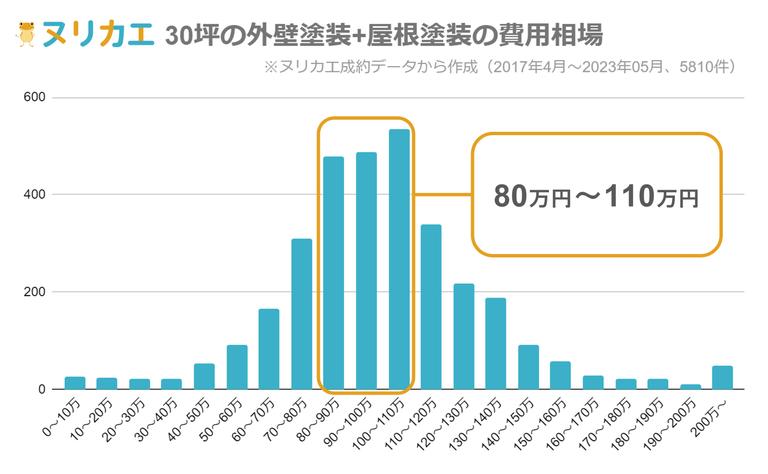 ※本サービス「ヌリカエ」の2017年4月~2023年5月における成約データから算出(屋根塗装+外壁塗装:5,810件)