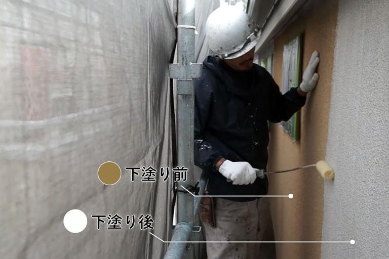下塗りをすることにより、このあとに塗る塗料の密着性が上がり、長持ちするようになります。