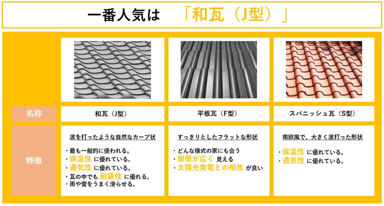 ③屋根全体に葺く瓦(日本古来の和瓦と平面瓦、スパニッシュ瓦の3つ)