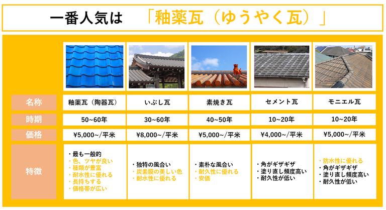 ぜひ参考にして、屋根瓦の購入・修理・メンテナンスなどにご活用ください。