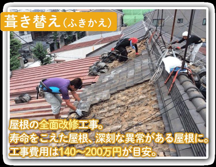 葺き替え(ふきかえ)は、屋根瓦全体を新しいものに交換する修理方法です。