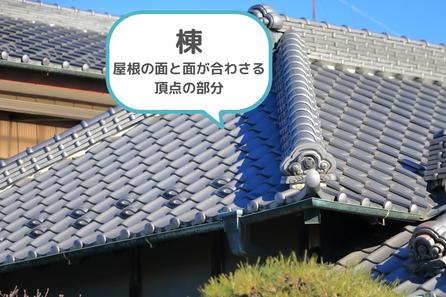 | 大棟(おおむね) | 屋根の一番高い部分にある水平の棟 |