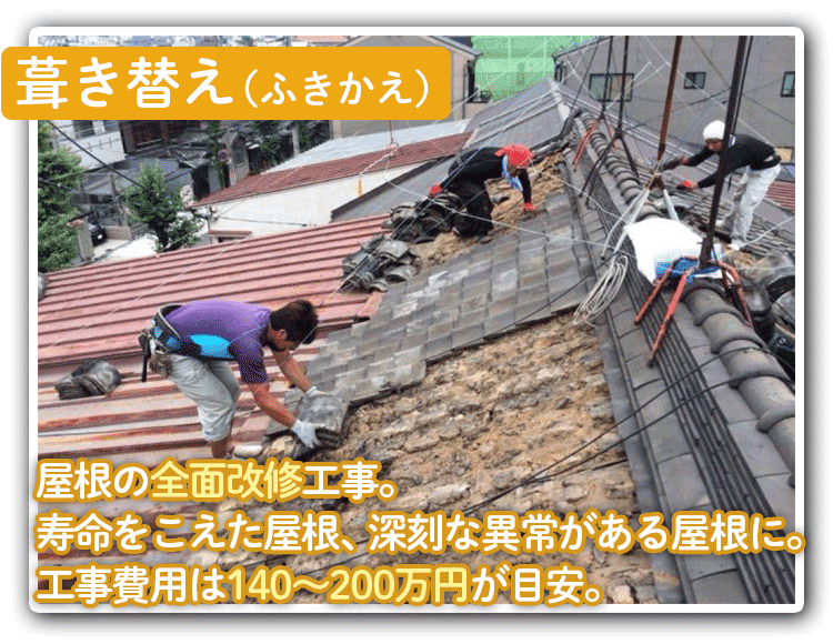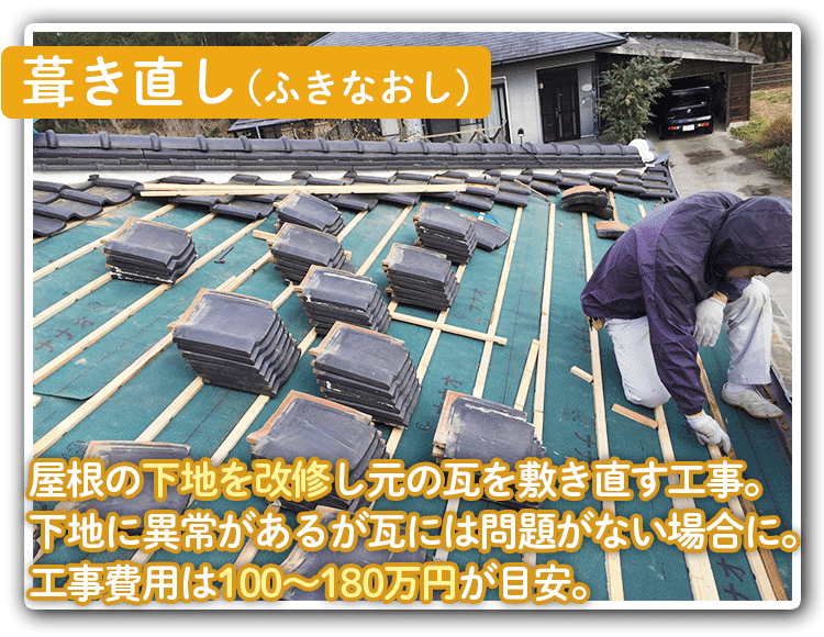 異常を修理してもすぐに別のトラブルが起こる可能性が高く、葺き替え・葺き直しで根本解決したほうが経済的だからです。