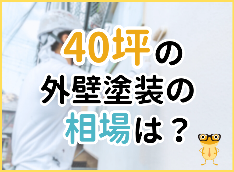 40坪住宅の外壁塗装の相場は80~130万円で、最もシンプルな工事で約92万円が目安です。 また、外壁塗装の費用は工事面積・使用する塗料・同時に行う工事の内容によって変動します。 監修者:外装劣化診断士 小林 成光 600件以上の現地調査を実施する過程で得た専門性を生かし、日本発のネット見積もりシステムでビジネスモデル特許を取得。ヌ...