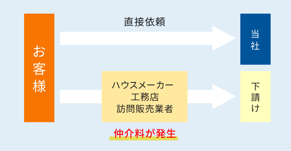 下請けを挟まないから仲介料はゼロ!無駄な費用を抑え、適正価格で高品質な工事を叶えます。