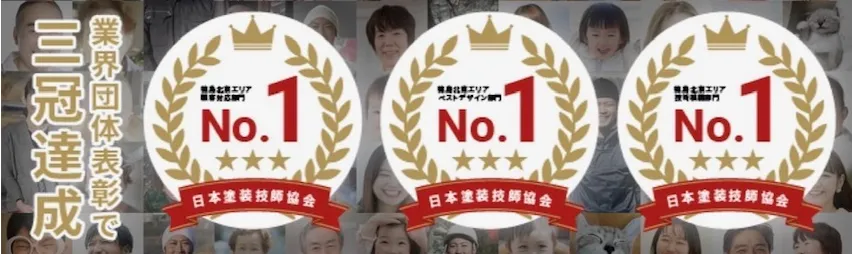 業界団体表彰で三冠を達成!これまでに2,500軒以上の住宅の塗り替え工事を行い、満足度94.6%という高評価を得ています